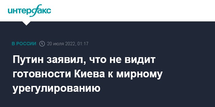 Москва. 20 июля. INTERFAX.RU - В Москве не видят готовности Киева выполнять договоренности по мирному урегулированию, заявил журналистам президент РФ Владимир Путин.