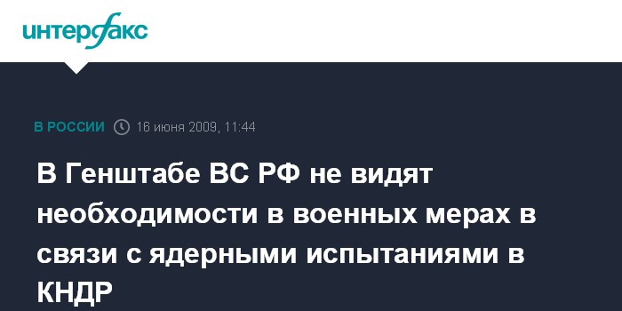 В Генштабе ВС РФ не видят необходимости в военных мерах в связи с ядерными испытаниями в КНДР