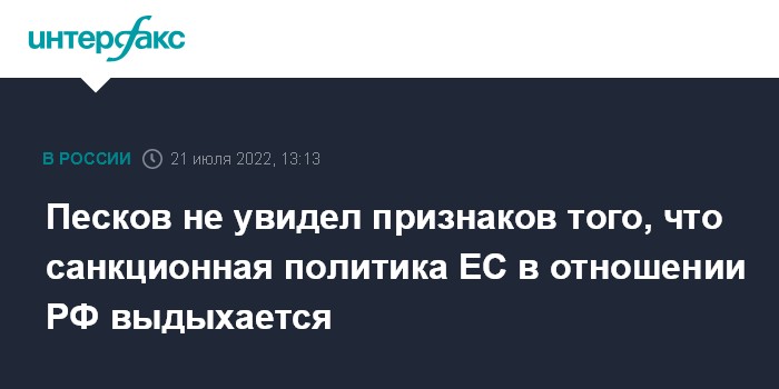Песков не увидел признаков того, что санкционная политика ЕС в отношении РФ выдыхается