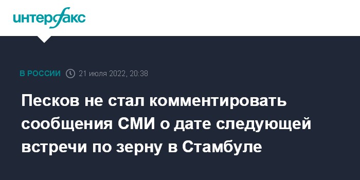 Песков не стал комментировать сообщения СМИ о дате следующей встречи по зерну в Стамбуле