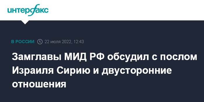 Замглавы МИД РФ обсудил с послом Израиля Сирию и двусторонние отношения