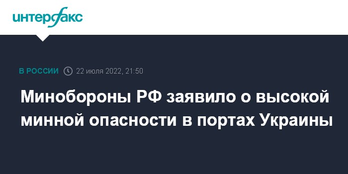 Москва. 22 июля. INTERFAX.RU - Иностранные суда по-прежнему заблокированы в шести украинских портах. Об этом сообщил начальник Национального центра управления обороной (НЦУО) РФ Михаил Мизинцев.