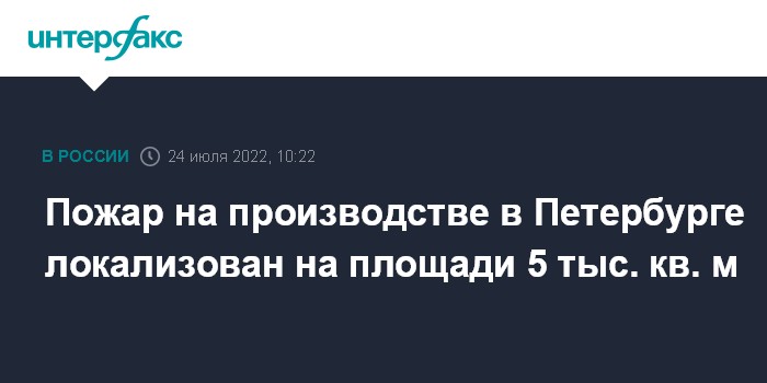Утром в воскресенье в МЧС сообщили о пожаре на деревообрабатывающем предприятии в поселке Металлострой Колпинского района Петербурга: загорелись цех и пристройка на общей площади 2,4 тыс. кв. метров. Позже площадь пожара увеличилась до 5 тыс. кв. метров. Пожару был присвоен третий ранг сложности из пяти.