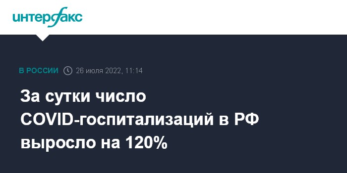 По состоянию на 26 июля, количество госпитализаций за сутки составило 1 664 человека и увеличилось в сравнении с предшествующими сутками на 119,2%.