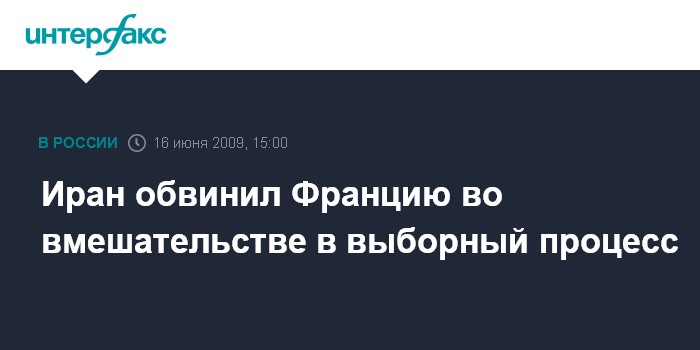 Тегеран. 16 июня. INTERFAX.RU - Посольство Исламской республики Иран во Франции осудило Париж за вмешательство в выборный процесс в Иране после того, как Франция выразила озабоченность в связи с ходом голосования, передает "Пресс-ТВ".