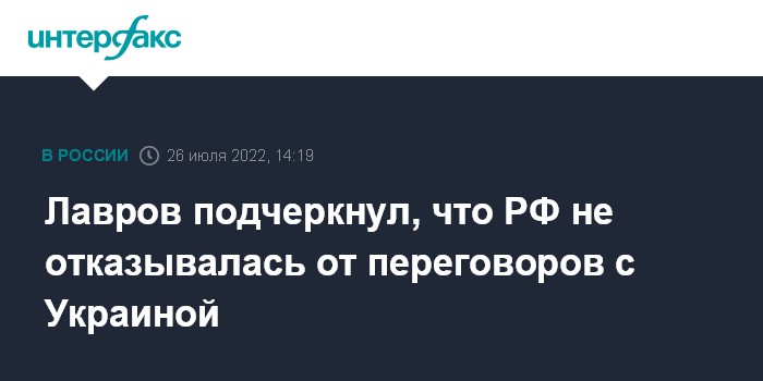 Москва. 26 июля. INTERFAX.RU - Москва никогда не отказывалась от переговорного процесса с Киевом, заявил глава МИД РФ Сергей Лавров.