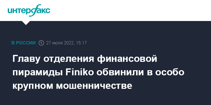 Главу отделения финансовой пирамиды Finiko обвинили в особо крупном мошенничестве