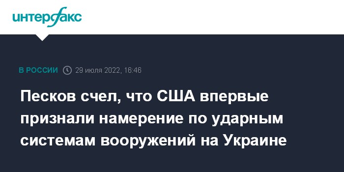 Песков счел, что США впервые признали намерение по ударным системам вооружений на Украине