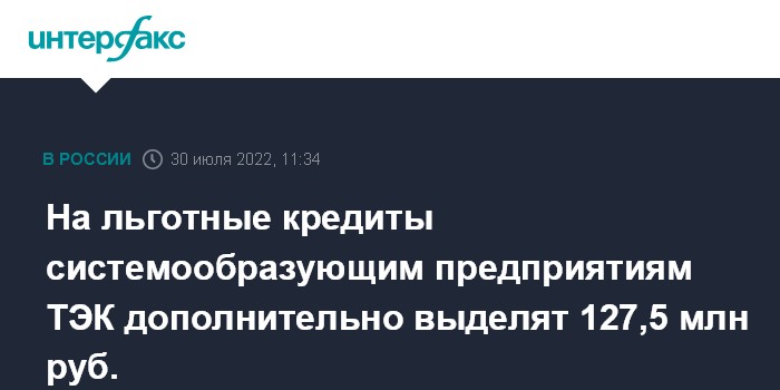 На льготные кредиты системообразующим предприятиям ТЭК дополнительно выделят 127,5 млн руб.