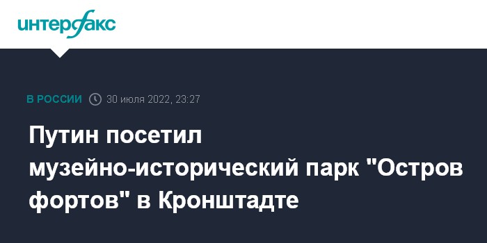 Москва. 30 июля. INTERFAX.RU - Президент РФ Владимир Путин в субботу вечером осмотрел музейно-исторический парк "Остров фортов" в Кронштадте.