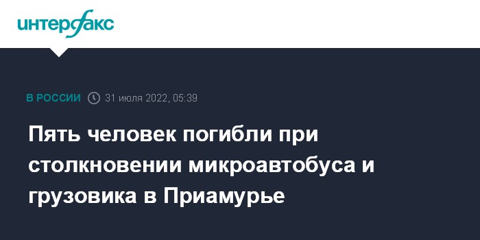 Москва. 31 июля. INTERFAX.RU - В Амурской области возбудили уголовное дело по факту автоаварии с участием микроавтобуса и КАМАЗа, жертвами которой стали пять человек, сообщили "Интерфаксу" в региональном УМВД.