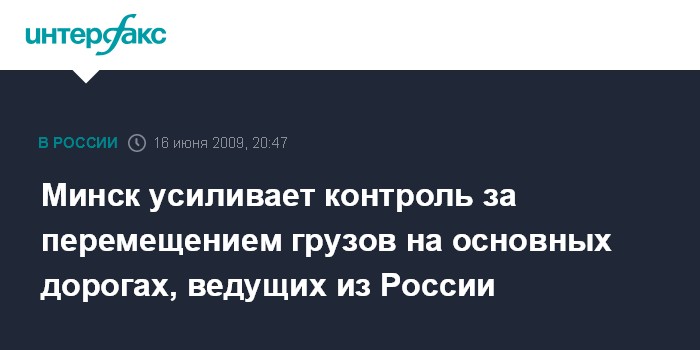Минск. 16 июня. INTERFAX.Ru - Государственный таможенный комитет Белоруссии с 9:00 (минское время - ИФ) 17 июня вводит усиленный режим контроля за перемещением грузов на основных белорусско-российских магистралях.