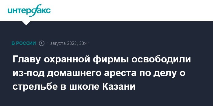 Главу охранной фирмы освободили из-под домашнего ареста по делу о стрельбе в школе Казани