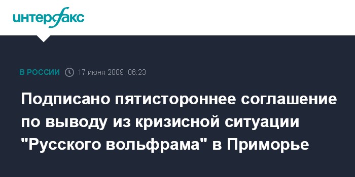 Подписано пятистороннее соглашение по выводу из кризисной ситуации "Русского вольфрама" в Приморье