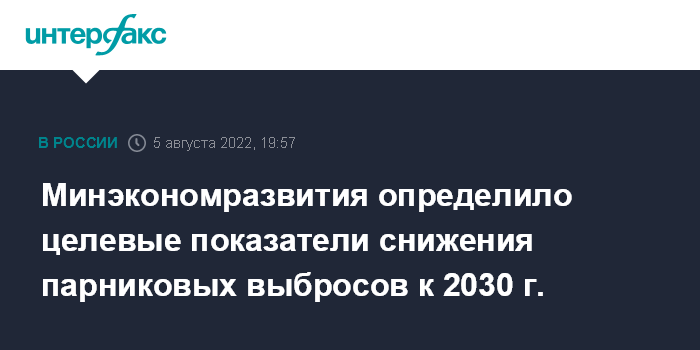 Министерство предлагает установить на 2030 год предельный для страны показатель выбросов парниковых газов в 2,212 млрд тонн эквивалента углекислого газа (экв. CO2) – 70% от массы парниковых газов по состоянию на 1990 год. Предельная масса нетто-выбросов - 1,673 млрд тонн экв. СО2 (54% относительно 1990 года), сообщается в документе, с которым ознакомился "Интерфакс".