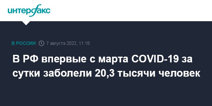 В РФ впервые с марта COVID-19 за сутки заболели 20,3 тысячи человек