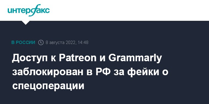 Доступ к Patreon и Grammarly заблокирован в РФ за фейки о спецоперации