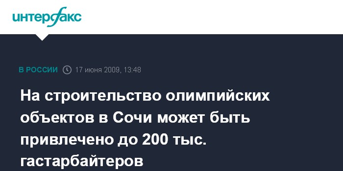 На строительство олимпийских объектов в Сочи может быть привлечено до 200 тыс. гастарбайтеров