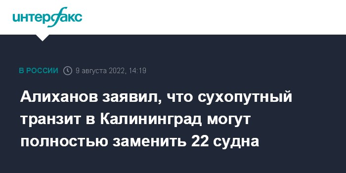 Алиханов заявил, что сухопутный транзит в Калининград могут полностью заменить 22 судна