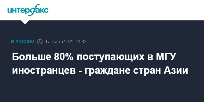 Москва. 9 августа. INTERFAX.RU - В 2022 году заявления на поступление в Московский государственный университет подали больше 3000 иностранцев из 50 стран, больше 80% из них - граждане стран Азии, сообщил на пресс-конференции ректор МГУ Виктор Садовничий.
