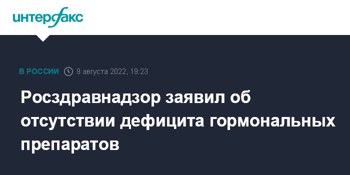 "Росздравнадзор на постоянной основе ведет мониторинг наличия лекарственных средств, в том числе и с помощью системы мониторинга движения лекарственных препаратов, которая дает возможность увидеть количество всех лекарственных средств, находящихся в обороте на фармацевтическом рынке. По результатам мониторинга, дефицита гормональных препаратов на рынке не отмечается", - говорится в сообщении ведомства во вторник.
