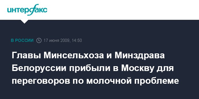 Главы Минсельхоза и Минздрава Белоруссии прибыли в Москву для переговоров по молочной проблеме