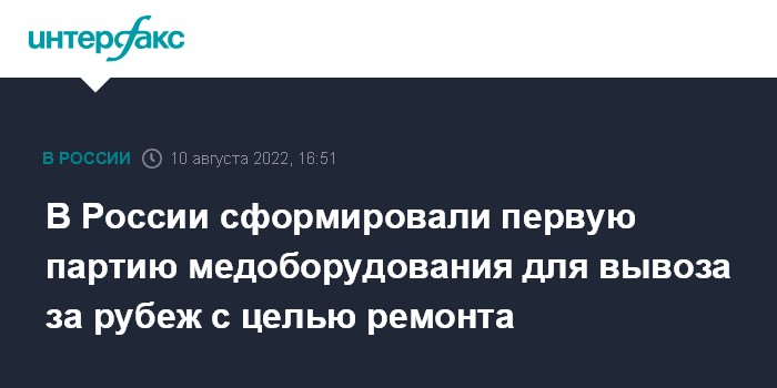 В России сформировали первую партию медоборудования для вывоза за рубеж с целью ремонта
