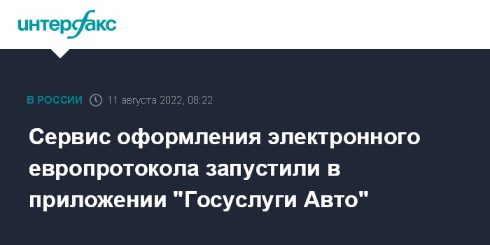 Москва. 11 августа. INTERFAX.RU - В приложении "Госуслуги Авто" появился сервис "Европротокол онлайн", сообщает пресс-служба Минцифры РФ в четверг.