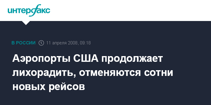 Нью-Йорк. 11 апреля. INTERFAX.RU - Из-за отмены крупнейшей американской авиакомпанией "Америкэн эйрлайнз" за минувшие трое суток свыше 2500 рейсов пострадали уже 140 тыс. пассажиров, сообщает в пятницу телекомпания Си-Эн-Эн.