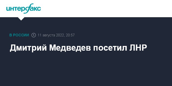 Москва. 11 августа. INTERFAX.RU - Заместитель председателя Совета безопасности Дмитрий Медведев сообщил в Telegram, что 11 августа посетил Луганскую народную республику, где провел совещание по вопросам безопасности и содействия экономическому и социальному развитию республик Донбасса и встречи с лидерами этих республик.