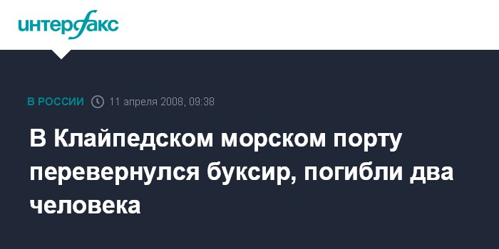 Вильнюс. 11 апреля. INTERFAX.RU - Два матроса погибли в четверг вечером в результате аварии в акватории Клайпедского морского порта в Литве, сообщил журналистам капитан порта Викторас Лукошявичюс.