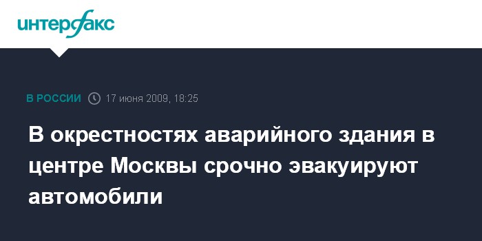 В окрестностях аварийного здания в центре Москвы срочно эвакуируют автомобили