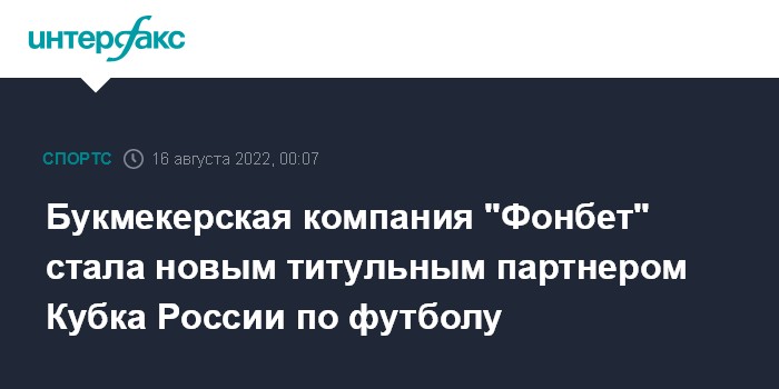 "По решению бюро исполкома РФС новым титульным партнером Кубка России стала компания "Фонбет", трансляции игр будут показаны на ресурсах холдинга "Матч ТВ". Эти соглашения выгодно для всех сторон: и наших новых партнеров, и клубов-участников и, разумеется, для футбольных болельщиков", - сказал временно исполняющий обязанности генерального секретаря РФС Максим Митрофанов.