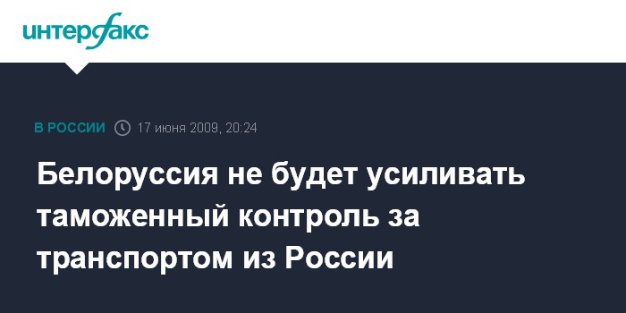 Минск. 17 июня. INTERFAX.RU - Белоруссия отменяет усиление таможенного контроля на автомагистралях за транспортом, следующим из России, в связи с урегулированием "молочной" проблемы, сообщил заместитель председателя Государственного таможенного комитета республики Сергей Борисюк.