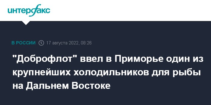 Москва. 17 августа. INTERFAX.RU - ГК "Доброфлот" (Приморский край, один из крупнейших производителей рыбных консервов в РФ) построила и ввела в Приморском крае холодильный склад для рыбы, сообщили "Интерфаксу" в компании.