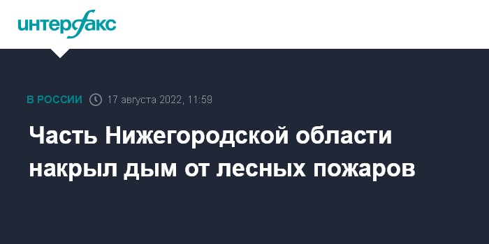 Москва. 17 августа. INTERFAX.RU - Смог, предположительно, вызванный природным пожаром, накрыл несколько муниципалитетов в Нижегородской области.