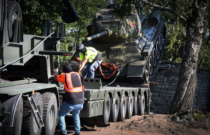 По распоряжению правительства Эстонии во вторник, 16 августа, в городе Нарва и его ближайших окрестностях были перенесены шесть монументов с советской военной символикой, в том числе танк Т-34.