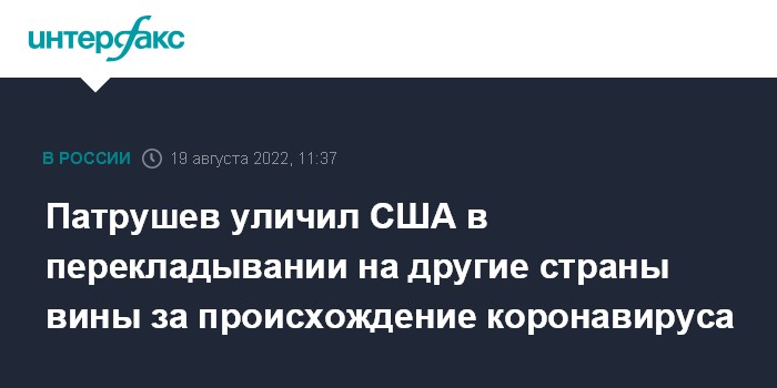 Москва. 19 августа. INTERFAX.RU - Секретарь Совбеза Николай Патрушев заявил на встрече секретарей Совбезов стран ШОС, что США пытаются избежать ответственности за происхождение коронавируса, перекладывая вину на другие страны.