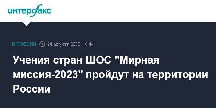 "Важную роль отводим подготовке войск (...). В следующем году на территории Российской Федерации проведём совместное военное антитеррористическое командно-штабное учение стран ШОС "Мирная миссия - 2023", - сказал Шойгу, выступая на совещании министров обороны стран - участниц ШОС в среду.