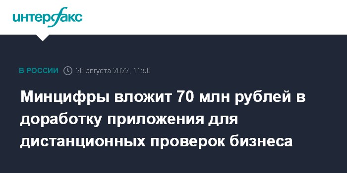 Минцифры вложит 70 млн рублей в доработку приложения для дистанционных проверок бизнеса