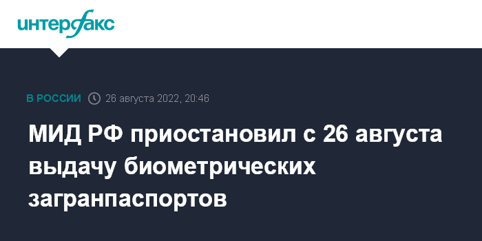 МИД РФ приостановил с 26 августа выдачу биометрических загранпаспортов