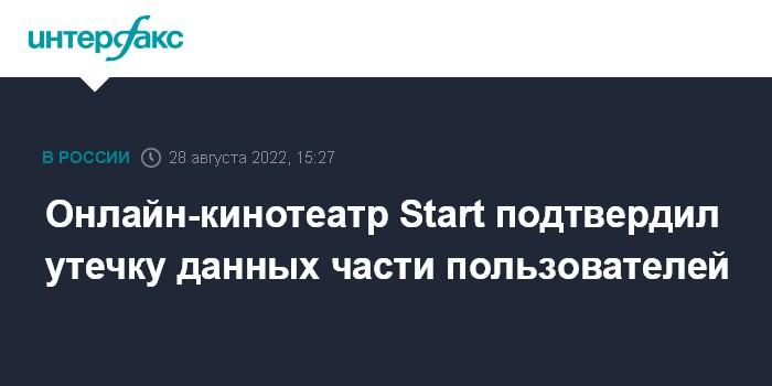 Москва. 28 августа. INTERFAX.RU - Онлайн-кинотеатр Start подтвердил информацию об утечке данных части пользователей, в компании отметили, что уязвимость уже исправлена, доступ к данным закрыт.
