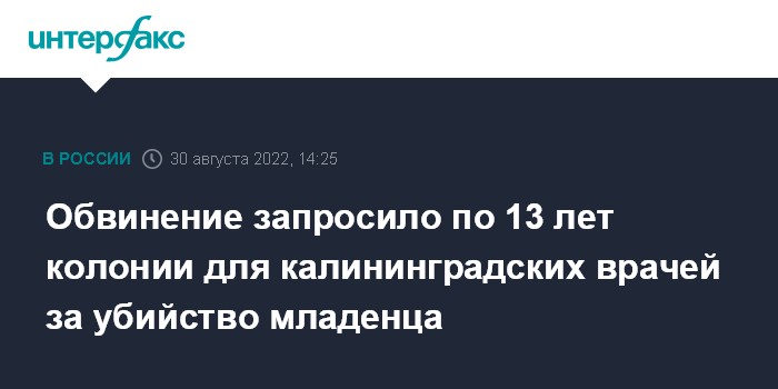 Обвинение запросило по 13 лет колонии для калининградских врачей за убийство младенца