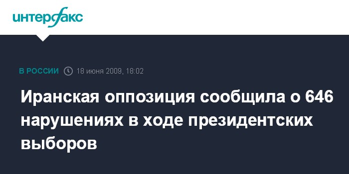 Тегеран. 18 июня. INTERFAX.RU - Совет стражей Исламской республики Иран в четверг получил от оппозиции сообщения о 646 предполагаемых нарушениях, совершенных во время недавних президентских выборов.