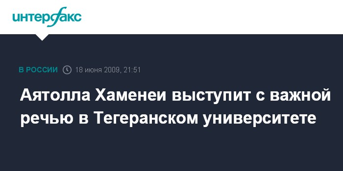 Вашингтон. 18 июня. INTERFAX.RU - Руководитель Исламской республики Иран аятолла Али Хаменеи намерен прочесть в пятницу проповедь в Тегеранском университете, спустя несколько дней после столкновений между стражами порядка и студентами этого учебного заведения, сообщает CNN.