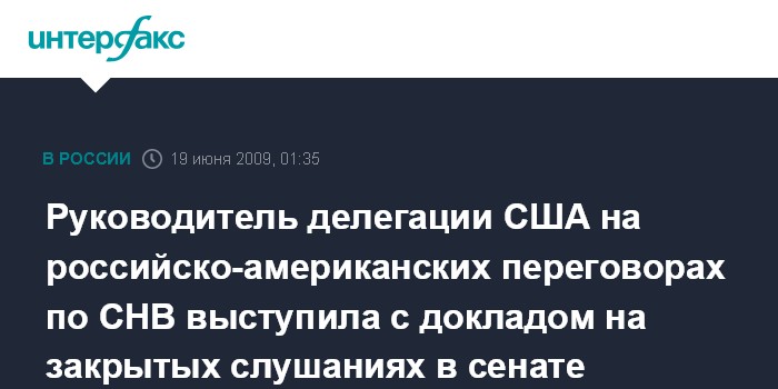 Руководитель делегации США на российско-американских переговорах по СНВ выступила с докладом на закрытых слушаниях в сенате