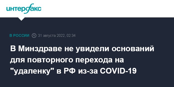 В Минздраве не увидели оснований для повторного перехода на "удаленку" в РФ из-за COVID-19