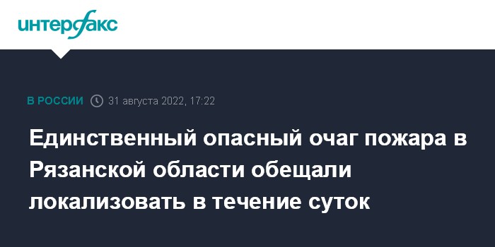 Москва. 31 августа. INTERFAX.RU - Единственный опасный очаг пожара в Рязани полностью контролируется и будет потушен в течение суток, заявил вице-премьер, руководитель аппарата правительства РФ Дмитрий Григоренко.