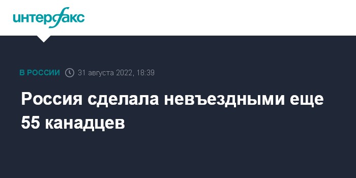 Москва. 31 августа. INTERFAX.RU - Россия в качестве ответной меры на очередные санкции запретила въезд 55 высокопоставленным военным, политикам и общественным деятелям Канады, а также внесла три канадских НПО в перечень организаций, деятельность которых признана нежелательной на территории России.