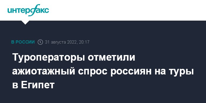 У туроператора TEZ Tour Египет занимает первое место по продажам, на осень и зиму на Египет приходится около 41% заявок. Компания продлила полетную программу на рейсах авиакомпании IFly из Самары, Казани и Санкт-Петербурга до 10 ноября, а из Москвы, Уфы, Екатеринбурга и Новосибирска до марта 2023 года.
